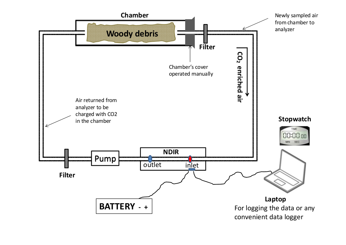 Using NDIRs requires the development of physical set-ups for the widest possible variety of decomposing materials, including leaf litter, dead wood etc. But learning from soil biologists who first used comparable techniques for measuring soil respiration could help. There are several ways of using NDIRs, including direct air sampling or linking them to different types of chambers.