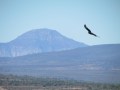 A Verreaux’s eagle seen here soaring in its typical habitat. Updrafts on cliff faces likely aid soaring flight. Away from cliffs eagles rely on thermal lift to achieve low cost flights. We found that birds were more likely to remain in an active state at higher wind speeds, which are known to aid soaring flight especially over ridges. (© Megan Murgatroyd)