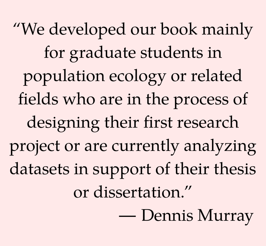 Dennis: We developed our book mainly for graduate students in population ecology or related fields who are in the process of designing their first research project or are currently analyzing datasets in support of their thesis or dissertation. We expected that graduate students would most benefit from the information contained in the book and also the online exercises that are available at a companion website. However, it can also be challenging for established researchers to stay on top of emerging analytical tools and approaches in population ecology. I think that there will be multiple audiences, including animal ecologists and wildlife professionals who would like a refresher on new methods. However, we designed the book to be a stand-alone treatise on modern population ecology, and it provides comprehensive coverage of a variety of ecological concepts in addition to methods for statistical analysis and study design, so individuals who are not actively involved in the computational end of population ecology should derive some useful insight from the book.