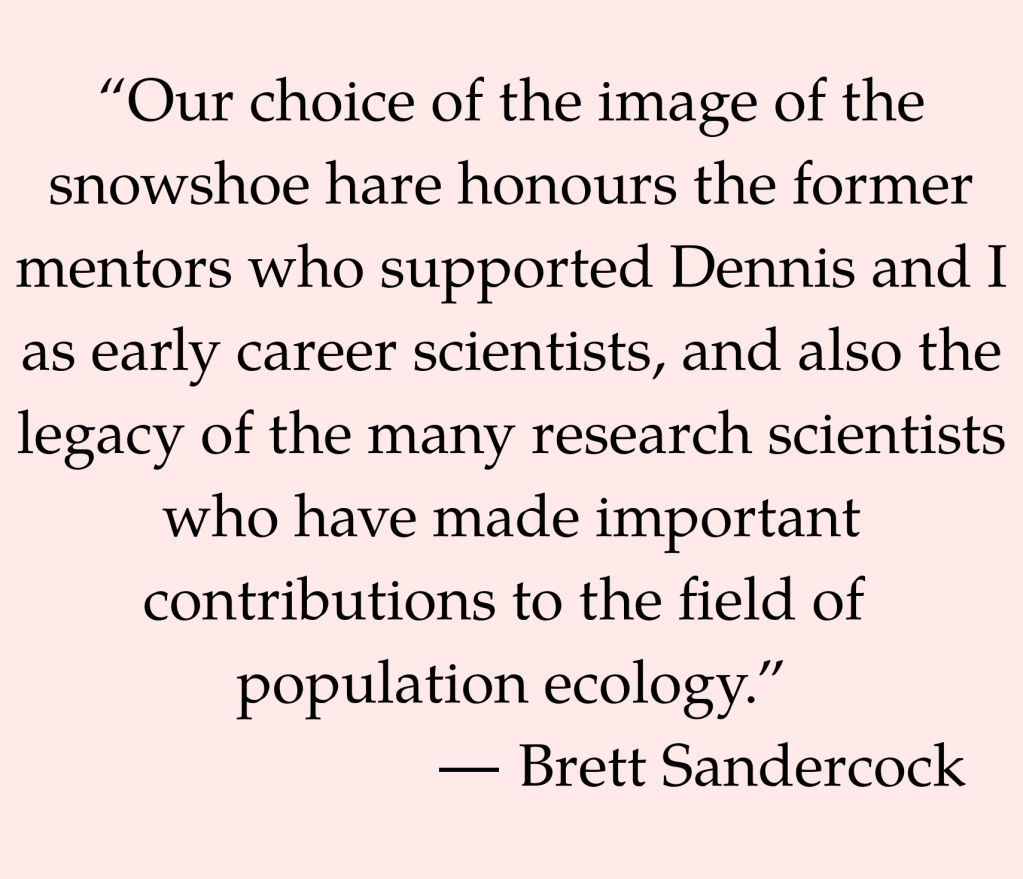 Brett: We were invited to submit photographs during the production process, and the publisher prepared a dozen examples of possible covers with different images and layout for the text. Our choice of the image of the snowshoe hare honours the former mentors who supported Dennis and I as early career scientists, and also the legacy of the many research scientists who have made important contributions to the field of population ecology.