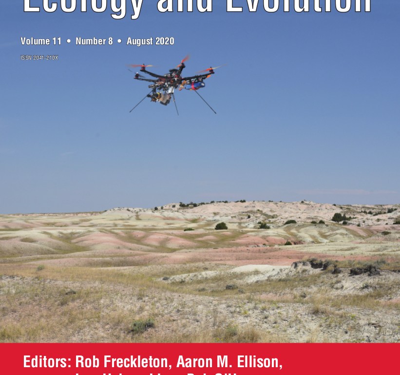 This month’s cover image shows an unmanned aerial vehicle (UAV or drone) flying across the badlands of the Oligocene‐aged White River Group of Wyoming, USA (~30 million years old) to verify potential fossils identified autonomously by the UAV the night before. Fossil candidates can now be searched out using fluorescence signatures detected by a laser‐scanning system onboard an autonomous UAV that scans the ground for fossils at night. The new system is detailed by Kaye and Pittman in their open access article and promises to improve how efficiently fossils are discovered in the field. The system also has strong potential for broader application in other areas of ecology and evolution through the identification of other mineral, rock and biological targets.
