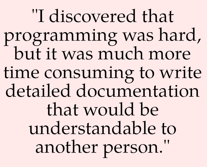 Writing an R package wasn’t really meant to be a chapter of my dissertation, and even if I thought it was important to write it as a package, some suggested I should wait until after my PhD. So, to make the case for working on a manuscript that wasn’t a chapter, I suggested that I write a short paper accompanying the package, highlight the use of the package, and that this would really help make me stand out after I graduated. I had seen the software reports describing R packages in Methods in Ecology and Evolution, and so I started making my most useful code into functions, and then used package.skeleton (devtools had only been around for half a year on CRAN, and I wouldn’t start using devtools myself until 2013). I then discovered how each of my functions suddenly had an .Rd file, waiting for me to fill with documentation. Not wanting to delay submitting to CRAN before I submitted my manuscript to MEE, I spent a week doing the minimum documentation necessary. At that point, I discovered that programming was hard, but it was much more time consuming to write detailed documentation that would be understandable to another person.