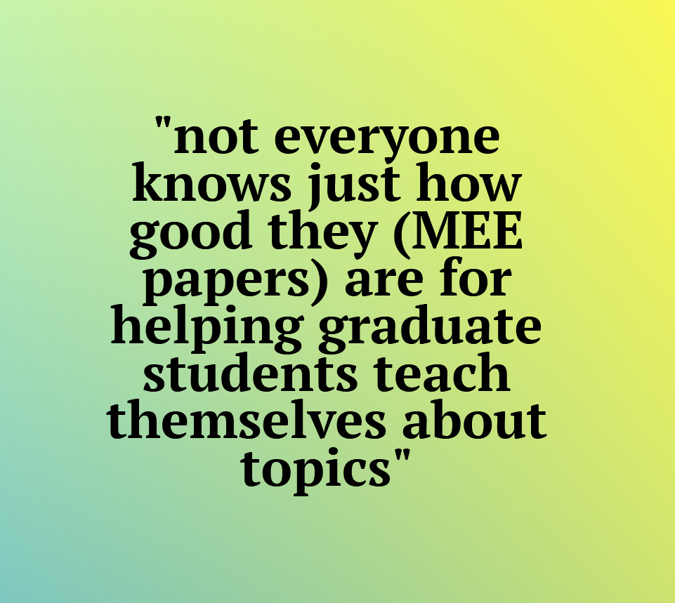 Everyone knows MEE articles are uniformly brilliant (right?!) but not everyone knows just how good they are for helping graduate students teach themselves about topics. Below are a selection of the papers I find myself constantly flinging to interested students to help them find their feet and learn how to learn.