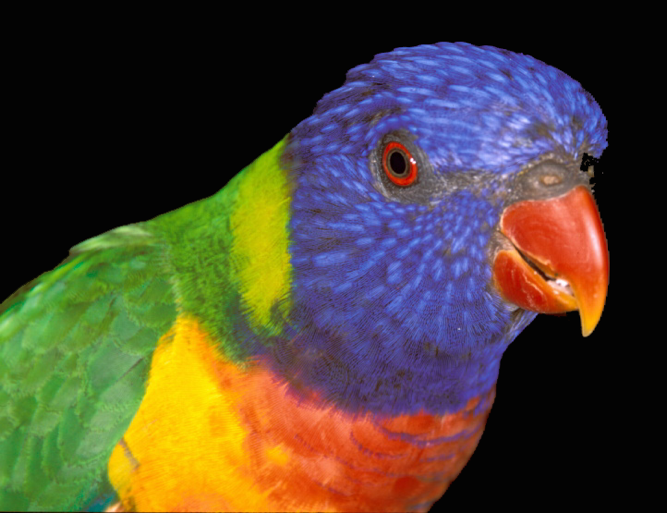 Can we somehow illustrate, visualise bird vision? There are wonderful ways to illustrate how mammals such as dogs and horses see colour, with only two channels. Can we do the same for birds? Well, it is easy to show how the rainbow lorikeet would look if birds had two colour channels only: