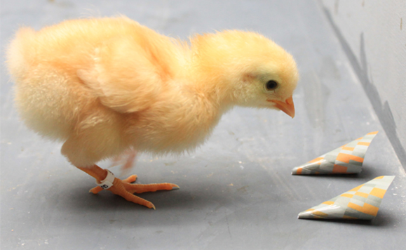 Now how can we know what they see? We have to ask them, and we do that by giving them a task and then a food reward if they can solve it. We do this again and again, making the task more difficult, and curious as they are, birds like this. We have trained chickens, and asked them to choose between two little food containers with food crumbs. We have made the colours more and more similar and thus, could find out how small colour differences they could discern. What we have learned is that they can differentiate between colours just as well as we can. From this we can extrapolate that they can see so many more colours, because they can also perceive the ultraviolet part of the spectrum.