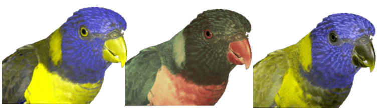 Can we somehow illustrate, visualise bird vision? There are wonderful ways to illustrate how mammals such as dogs and horses see colour, with only two channels. Can we do the same for birds? Well, it is easy to show how the rainbow lorikeet would look if birds had two colour channels only: