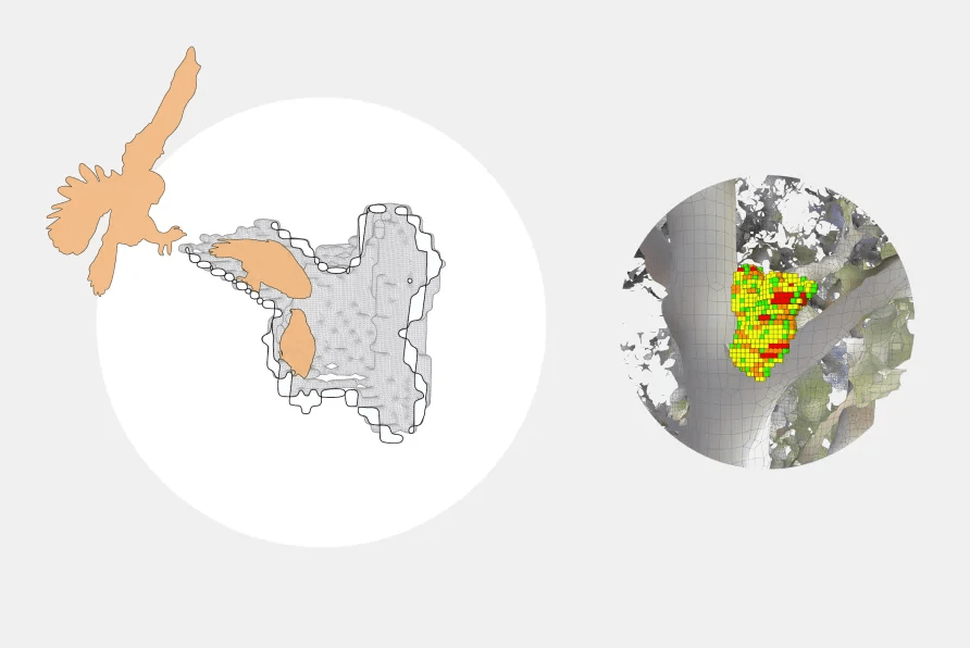 Like tree cavities, our artificial hollows feature rounded entrance pads for landing, tunnels for feeding, and stepped interiors to aid climbing. Like termite nests, they precisely fit the complex geometries of host trees. 3D scanning helps to fit the hollows on branches at positions preferred by owls, and in areas where arborists find installation easier.