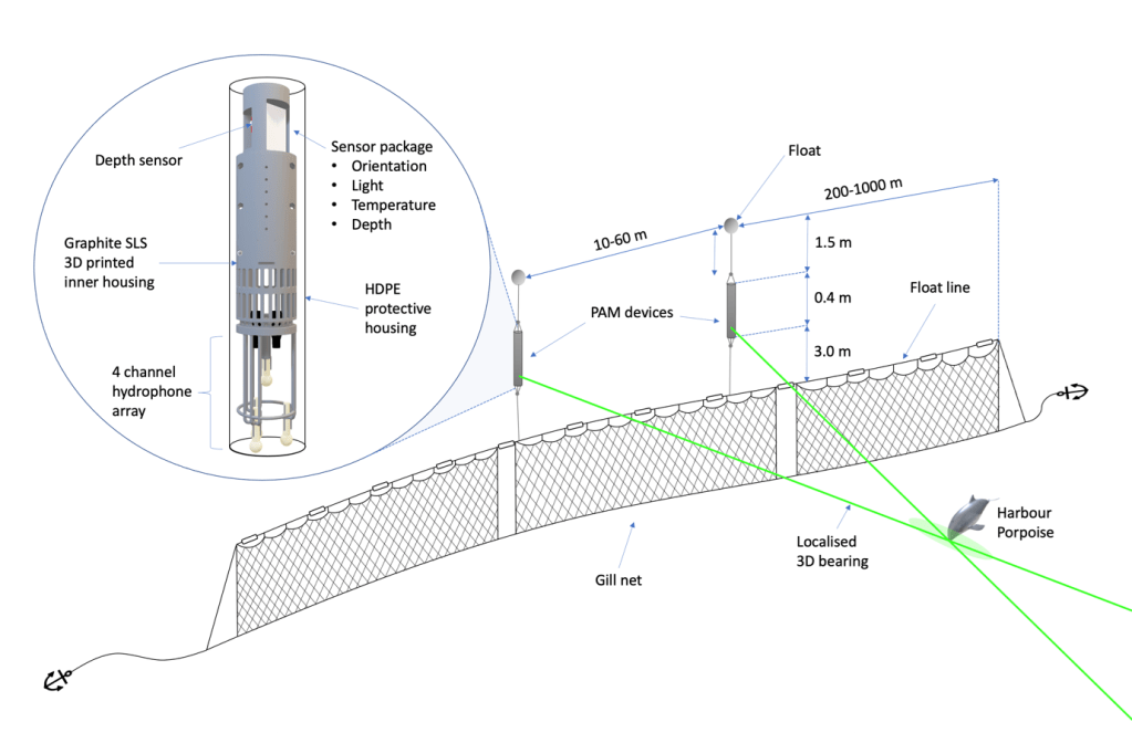 Entanglement in net fisheries (static and drift) is the largest known cause of direct anthropogenic mortality to many small cetacean species, including harbour porpoise (Phocoena phocoena), in UK waters. Despite this, little is known about the behaviour of small cetaceans in proximity to nets. In this blog post, Jamie Macaulay discusses the findings of his Methods in Ecology & Evolution paper ‘Passive acoustic tracking of the three-dimensional movements and acoustic behaviour of toothed whales in close proximity to static nets’ .