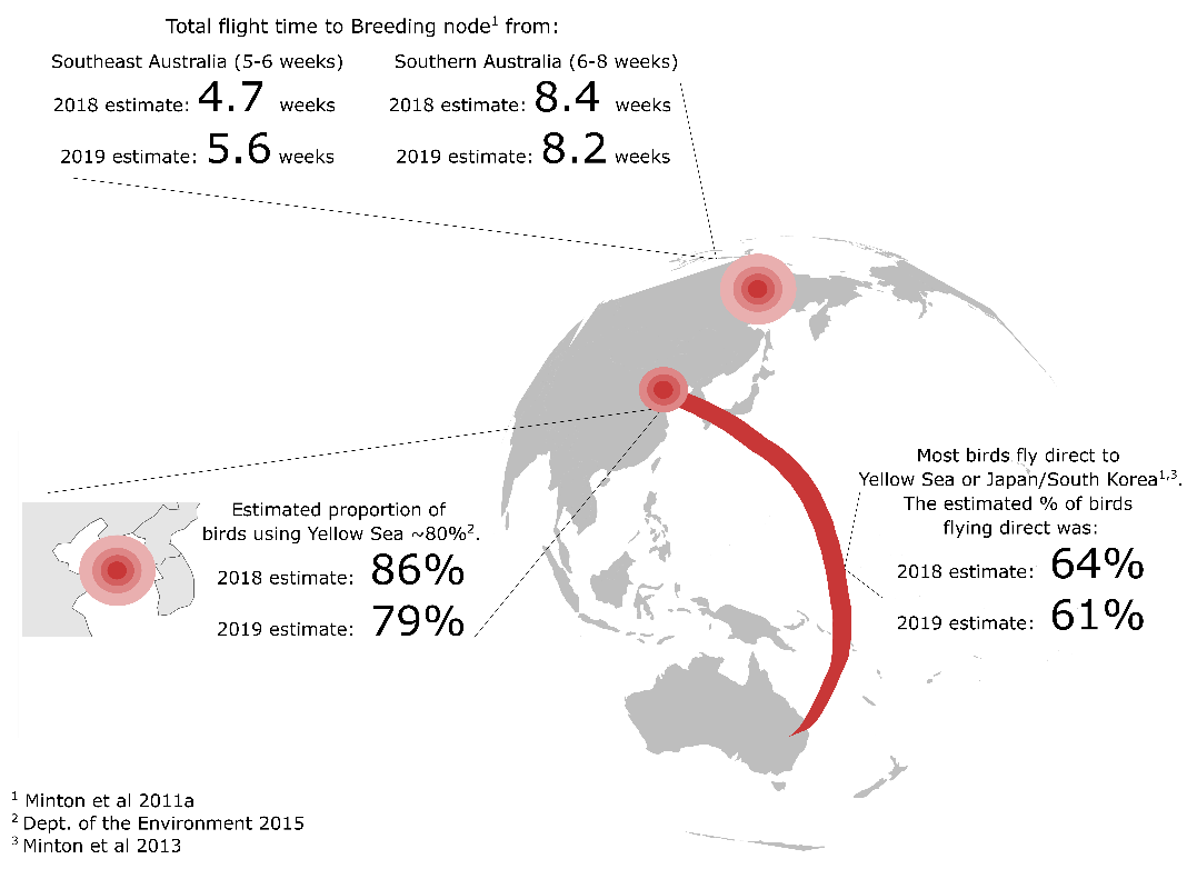 In our study published in Methods in Ecology and Evolution, we developed a novel statistical model to infer population connectivity (i.e. where birds go at the population level) between broad regions for shorebirds migrating along the East Asian-Australasian Flyway. Our study estimates the proportion of the bird population that moves between key regional nodes (e.g. what proportion of birds uses China’s Yellow Sea as a stopover site?), as well as estimating the average number of weeks that birds spend in each region during migration. Crucially, we were also able to adjust for the challenges posed by the eBird data and still obtain good results. Although the eBird data was very noisy, our model successfully replicated key aspects of the migration that were predicted by experts, providing a useful empirical validation of both our models and expert observations.