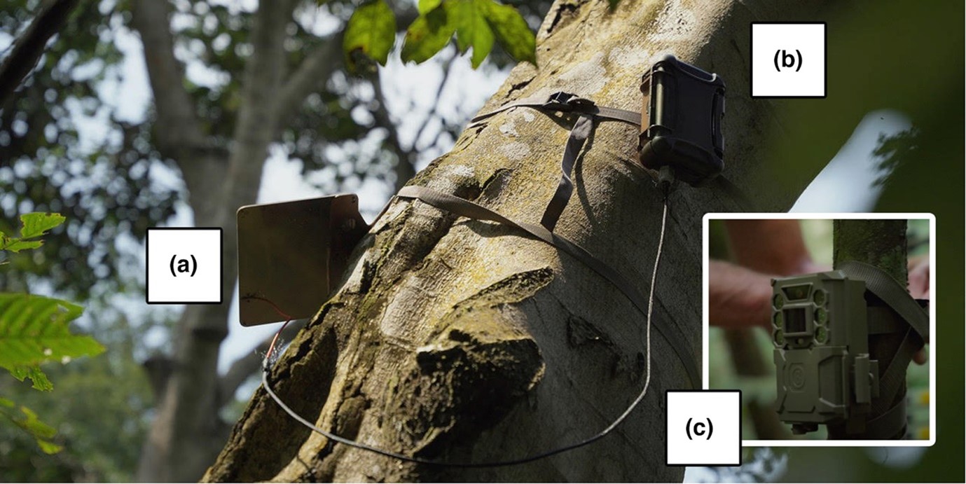 Efforts to preserve, protect and restore ecosystems are hindered by long delays between data collection and analysis. Threats to ecosystems can go undetected for years or decades as a result. Real-time data can help solve this issue but significant technical barriers exist. Using an off-the-shelf camera trap (Bushnell™) and customised existing open-source hardware to create a ‘smart’ camera trap system. Images captured by the camera trap are instantly labelled by an artificial intelligence model and an ‘alert’ containing the image label and other metadata is then delivered to the end-user within minutes over the Iridium satellite network. New artificial intelligence models such as this will expand the system’s potential for other, real-time use cases including real-time biodiversity monitoring, wild resource management and detecting illegal human activities in protected areas.