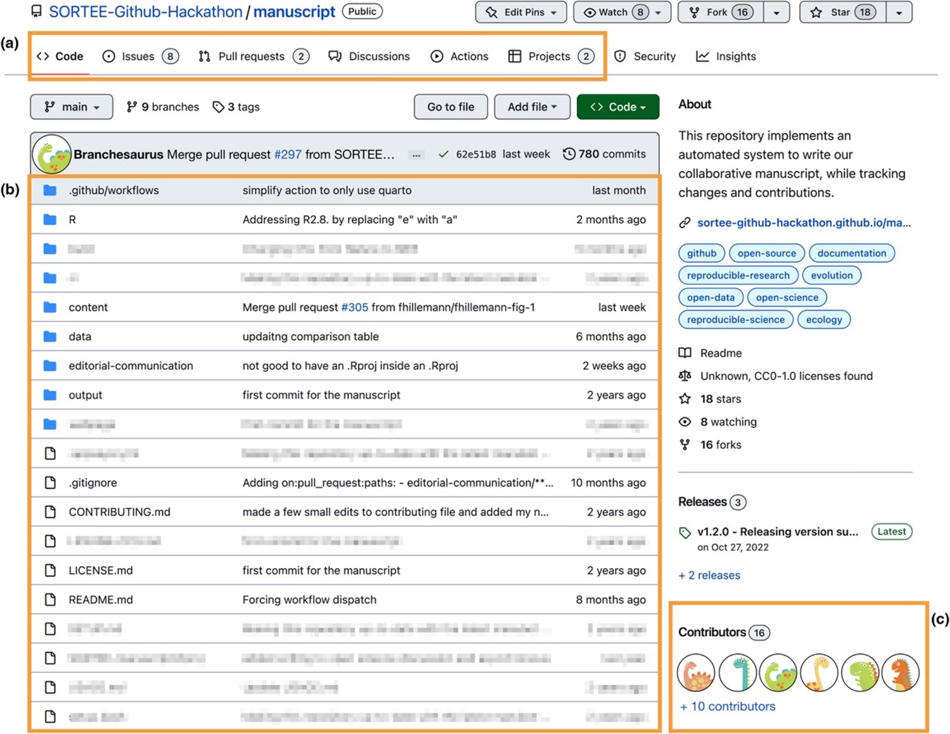 Researchers in ecology and evolutionary biology are increasingly dependent on computational code to conduct research. Hence, the use of efficient methods to share, reproduce, and collaborate on code as well as document research is fundamental. To help researchers in ecology and evolution adopt useful features from GitHub to improve their research workflows, this article reviews 12 practical ways to use the platform.As more ecologists and evolutionary biologists establish their workflows using GitHub, the field can continue to push the boundaries of collaborative, transparent, and open research.