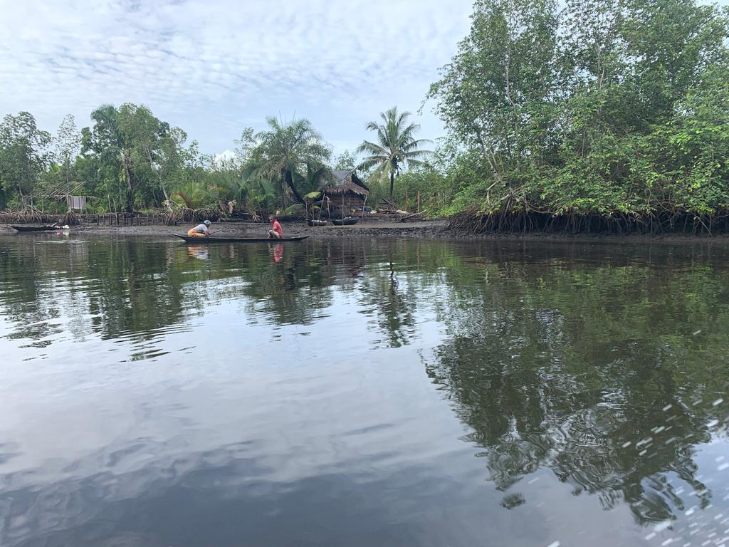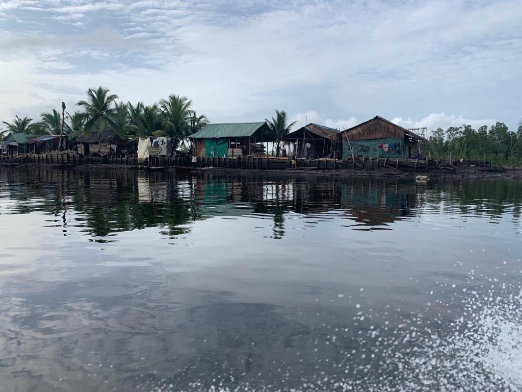 Image gallery from top left to bottom right: Collecting Samples, Communities living on Santa Barbara river, Mangroves, The Santa Barbara River, Blessing outside Igbinedion Univerisity.