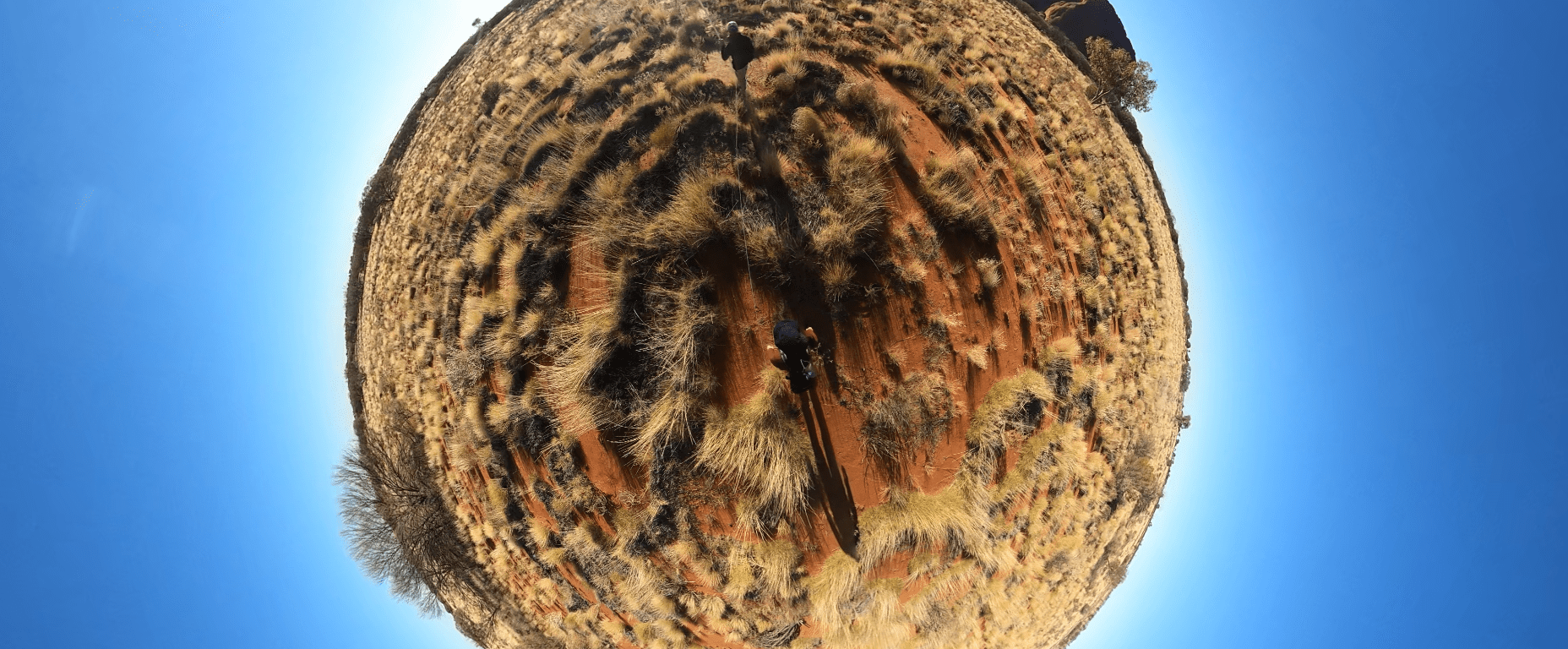This image shows a single frame of a GoPro Max video captured while collecting field data at Uluru- Kata Tjuta National Park in Australia’s iconic ‘red centre’. The interesting ‘tiny planet’ effect was created by mapping the entire panospheric image, which was taken 3 m above the ground, onto a flat plane. In this image spinifex grassland (Triodia spp., Tjanpi to Anangu people) has been severely affected by drought, with the blackened inner portions of the hummock rings clearly visible. Uluru appears in the top right and another impacted shrub, mulga (Acacia aneura sens. lat.; Wanari) can be seen in the bottom left of the globe. Technological advances in 360-degree cameras and software for working with panospheric imagery have made rapid and inexpensive collection of ecological data over multiple spatial and temporal scales a reality. Read the article here.