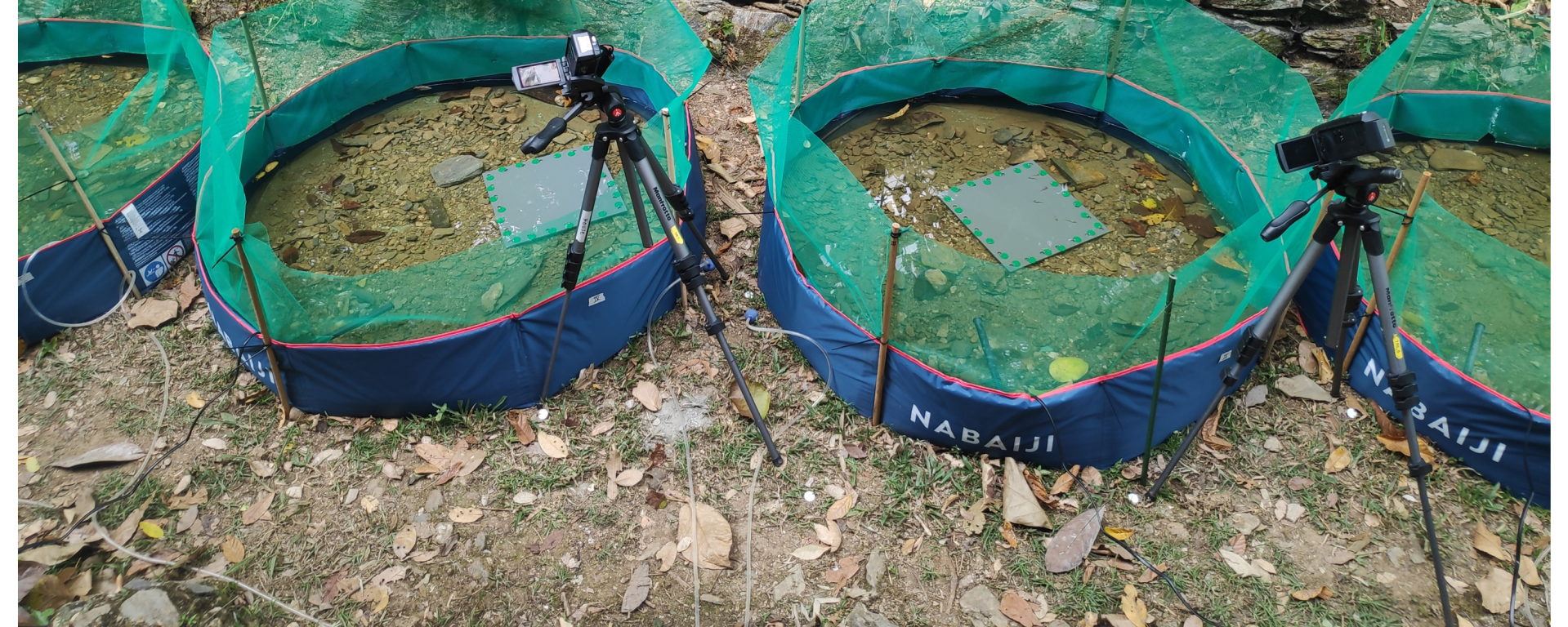 O passo final foi adaptar o tabuleiro experimental para diferentes tipos de habitat. Sozinho, pode ser facilmente colocado em riachos ou lagoas pouco profundas, mas queríamos também que fosse acessível para águas mais profundas. Criámos, então, uma estrutura de suporte com uma base pesada e uma parte superior deslizante que contém o tabuleiro e a câmara de vídeo.