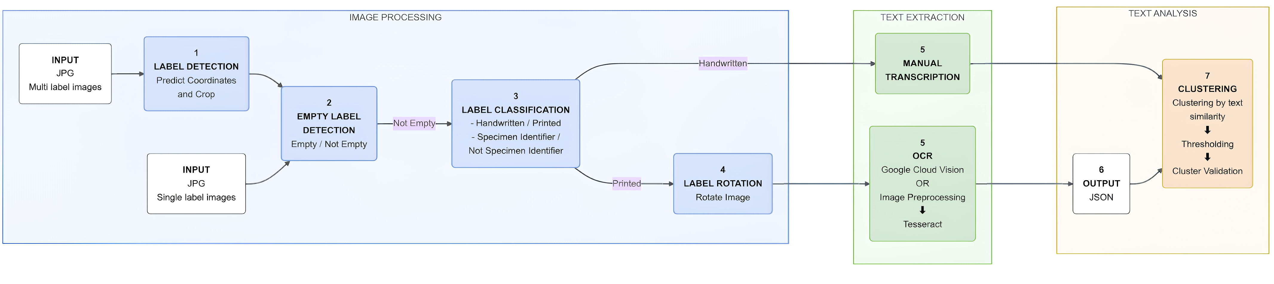 This is where ELIE comes in. In our Methods in Ecology and Evolution article, High Throughput Information Extraction of Printed Specimen Labels from Large-Scale Digitization of Entomological Collections using a Semi-Automated Pipeline, we present this pipeline as a modular solution designed specifically for entomological collections.