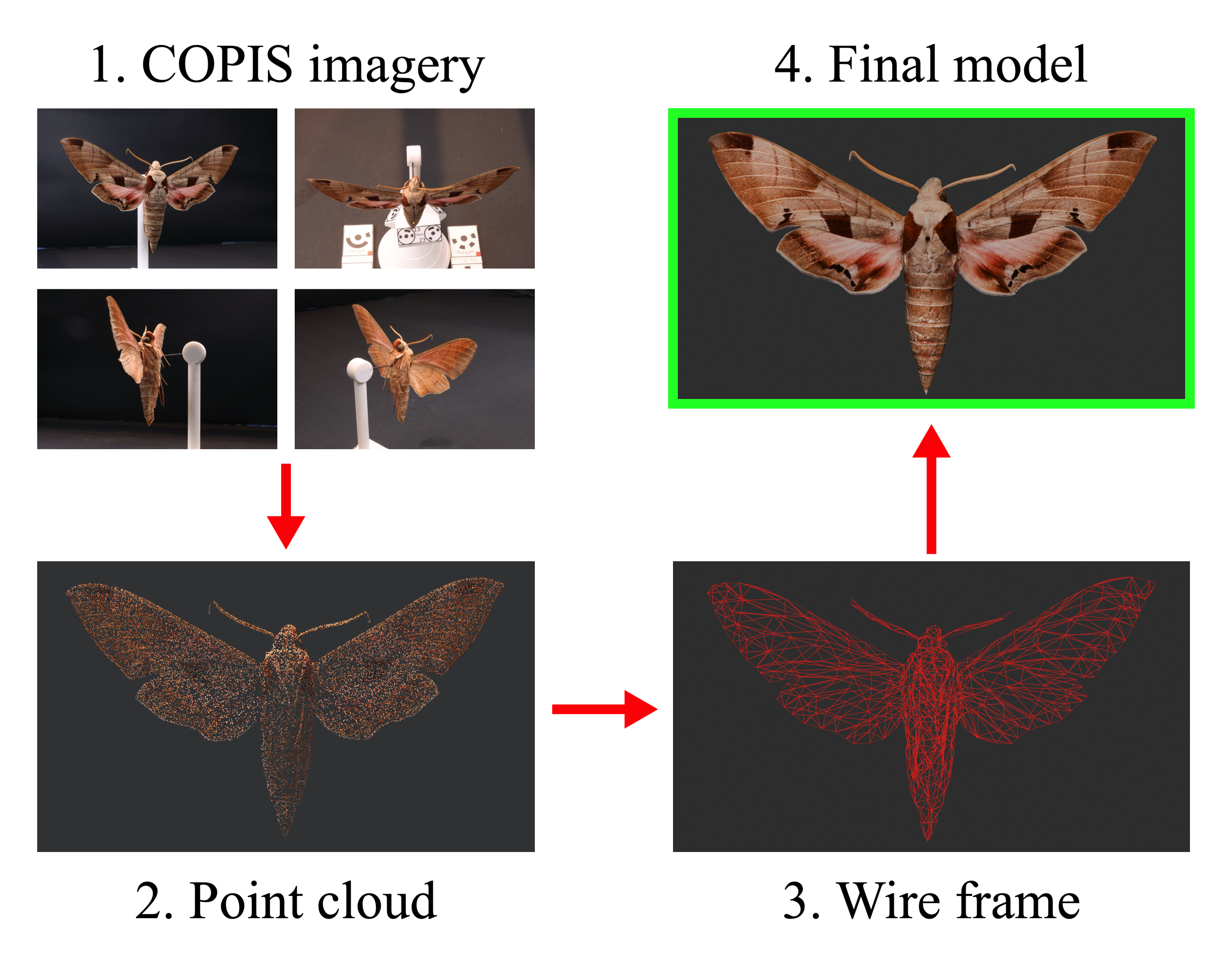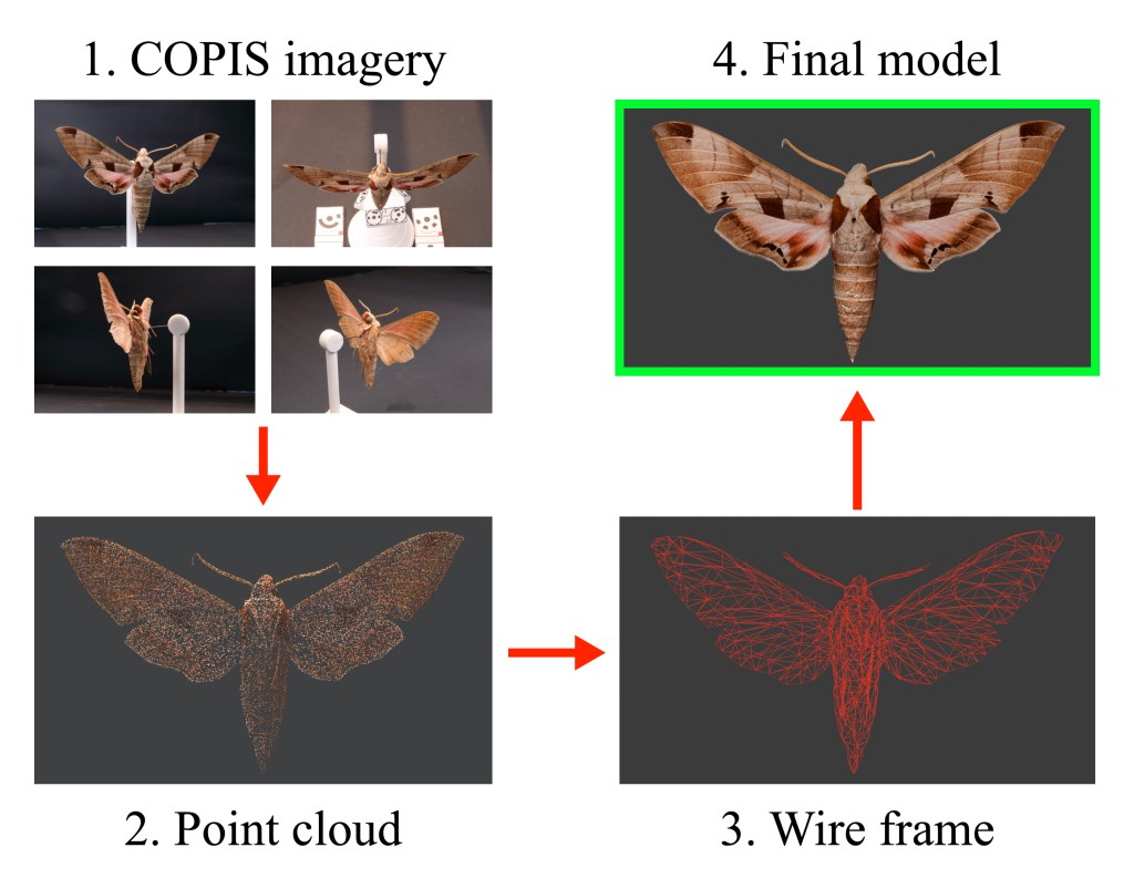 However, advances in 3D modelling are beginning to remedy this. High-resolution digital models of natural history specimens can be created in true scale and color, allowing researchers to share and instantly access specimens remotely from anywhere in the world for examination and use in computational analyses. In some cases, digital models even allow scientists to measure features that are difficult or impossible to obtain from physical specimens, such as surface area or volume. To help make large-scale 3D digitization possible, we developed COPIS, the Computer Operated Photogrammetric Imaging System. COPIS combines robotics and photogrammetry in a single high-throughput, open-source, and customizable platform for generating 3D models of natural history specimens.